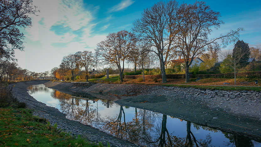 När Göta kanal byggdes under åren 1810-1832 planterades 16 000 träd längs den 19 mil nya vattenvägen. Syftet var främst att träden skulle stabilisera kanalbankarna, särskilt längs de närmare nio mil som grävts för hand. Att träden förskönar miljön var inte lika viktigt, men så har det blivit. Och aldrig är kanalen så vacker som under höstarna med lönnar som flammar i gult och rött och ekar i bronsfärgad lövskrud.