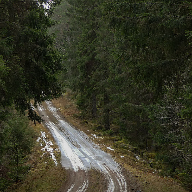 Nu går det inte att hålla emot längre, jag måste ut i skogen. Visserligen är den första uvnatten redan avklarad för i år men jag måste ut första lediga dag. Fast det är långt till vårens tjäderspel så drar jag ändå ut till min hemliga tjäderskog för att se hur det står till med skogen. Det är ovanligt att de oändliga grusvägarna är farbara när man skall ut på spel och tjällossningstiden är alltid ett äventyr. I år kanske vägarna är bra när spelsäsongen kommer igång i april för redan nu i februari balanserar väglaget på en tunn knivsegg mellan skridskois och obottnad lervälling. Bilen rycker hit och dit i sidled och spårar sig fram som den själv vill men till slut så når jag fram till min tänkta parkeringsplats.