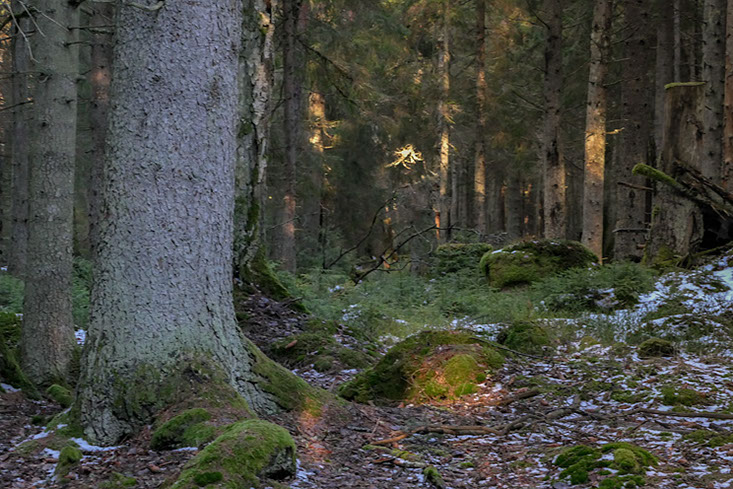 När ryggsäcken återigen hänger på ryggen tar jag ut stegen för att hinna fram till bilen innan det blir mörkt. Jag kan med glädje och tillförsikt konstatera att det börjar arta sig till en spännande vår i den gamla skogen. Visst är det sagolikt att det fortfarande finns små men ändå skogar som kan ge liknade upplevelser som de Erik Rosenberg upplevde för mer än 80 år sedan. Eller som Erik själv skriver: