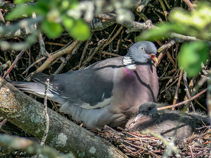 Fyra meter från mitt sovrumsfönster har ringduvan valt att bygga sitt bo med full insyn. Så nu behöver jag ingen tv.....