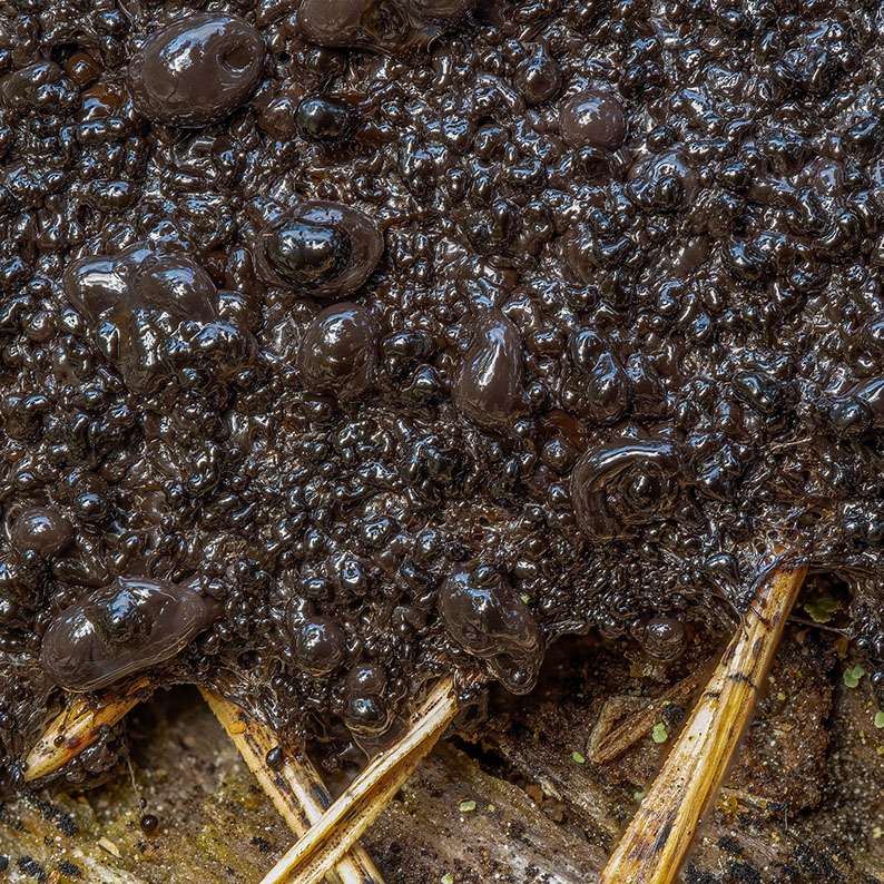 För mig är det är alltid upptäckarglädjen som driver den fältbiologiska upptäcktsresan i det egna landskapet och ju mer man är ute desto mer lär man sig. Det var just vid en sådan utflykt i trakterna av Tjällmo i Östergötland som jag för en tid sedan hade turen på min sida. Invid en å som rinner genom storskogen såg det ut som om någon hade smetat rysk kaviar på en torrstam och det fick mig att stanna upp och nogsamt granska det jag hittat. Det liknade inte något jag tidigare sett men det stod ganska klart för mig att det var en slemsvamp jag hade mött, men vilken? Jag tog en hel del bilder för att kunna gå vidare med artbestämningen när jag kom hem.