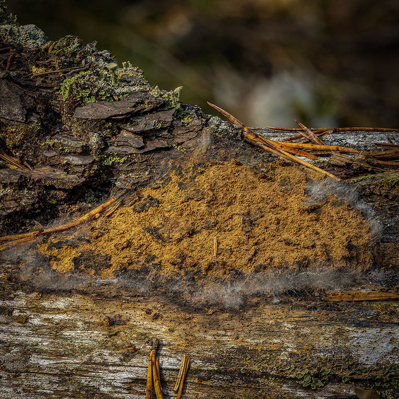 Jag besökte åter igen platsen där jag hittat slemsvampen men nu såg den helt annorlunda ut och den ryska kaviaren hade omvandlats till ett fint spormjöl.