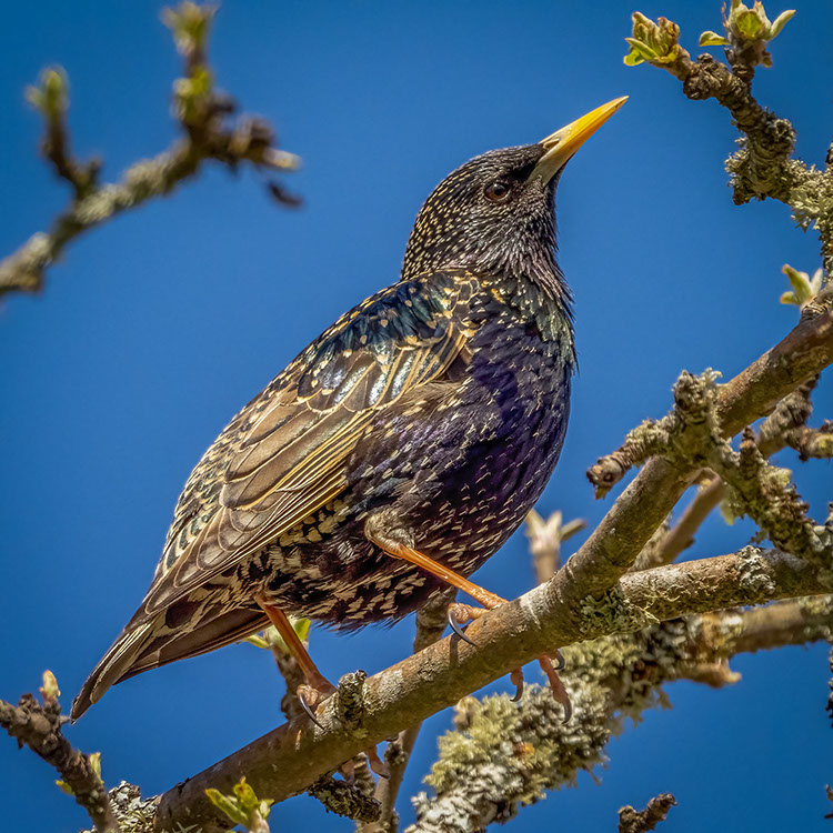 Nu sitter han äntligen där igen i mitt äppelträd, staren, med finaste vårkostymen på....äntligen